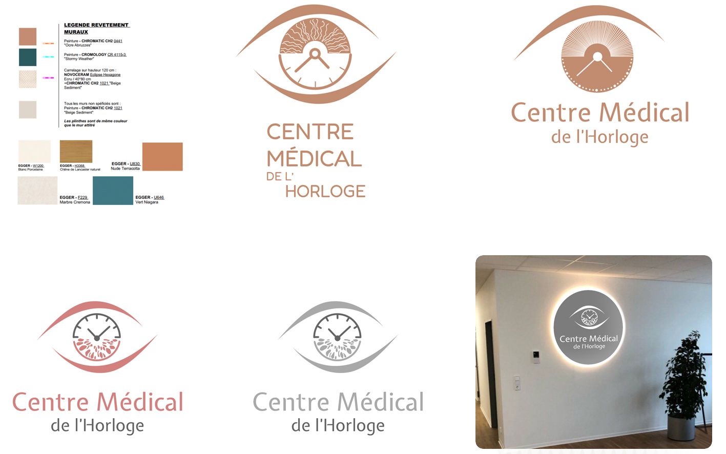 Conception graphique du logotype par Hélène Fournié. Développement de variantes déclinables sur différents supports, avec une palette chromatique directement issue des tonalités définies par l’agence Habilitis, en charge de l’architecture intérieure.